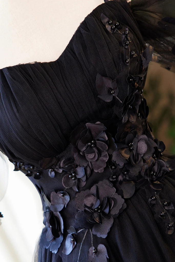 Black Tulle Off the Shoulder Lace Floral Short Prom Dresses, Black Lace Homecoming Dresses, Black Formal Graduation Evening Dresses WT1653