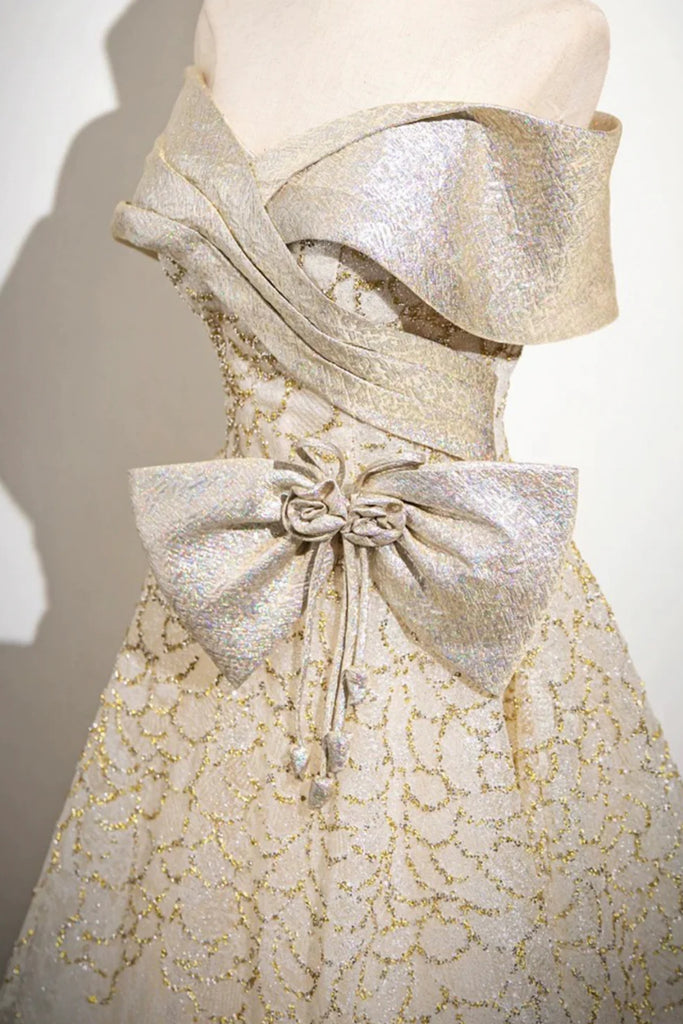 Champagne Glitter Sequins Off the Shoulder Floor Length Long Prom Dresses, Off the Shoulder Champagne Formal Graduation Evening Dresses WT1571