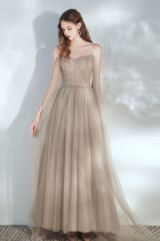 Champagne Tulle Elegant Long Prom Dresses, Champagne Formal Graduation Evening Dresses WT1120