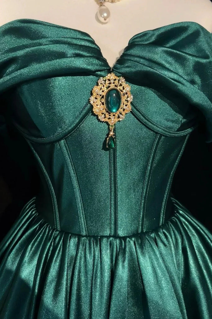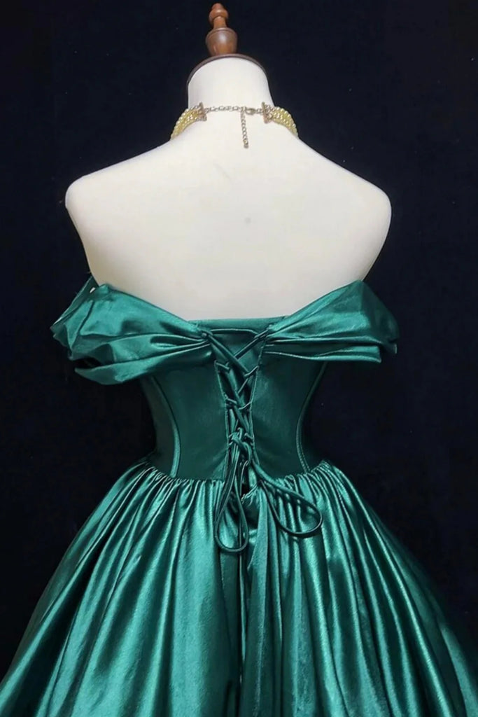 Green Satin A Line Off the Shoulder Short Prom Dresses, Off Shoulder Green Homecoming Dresses WT1675