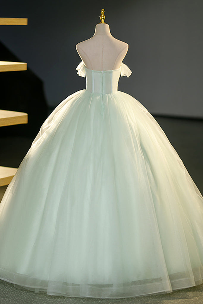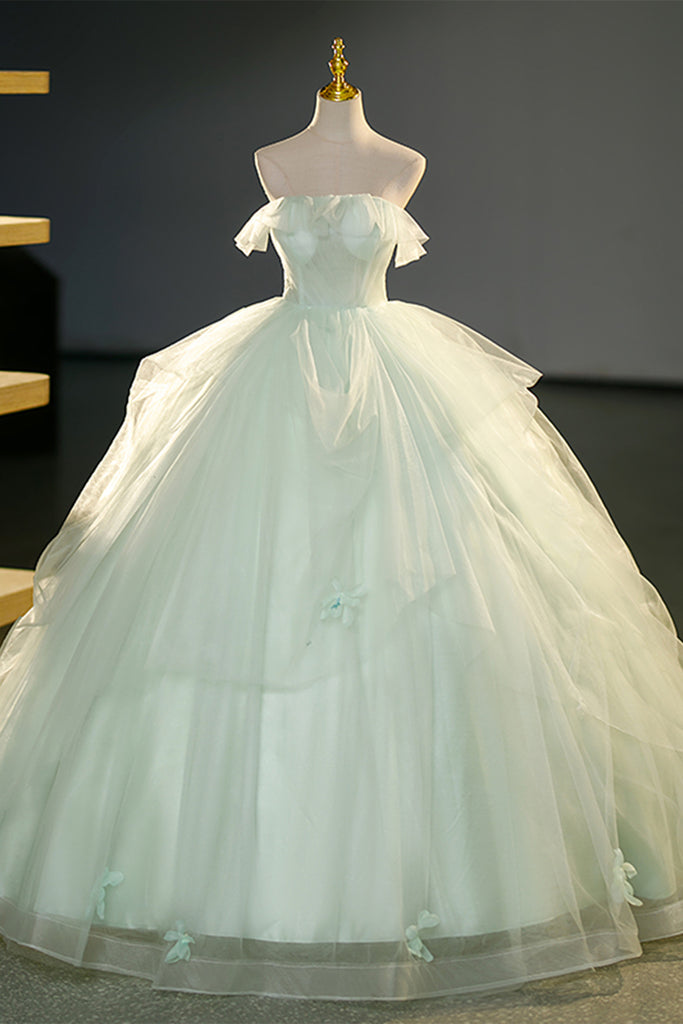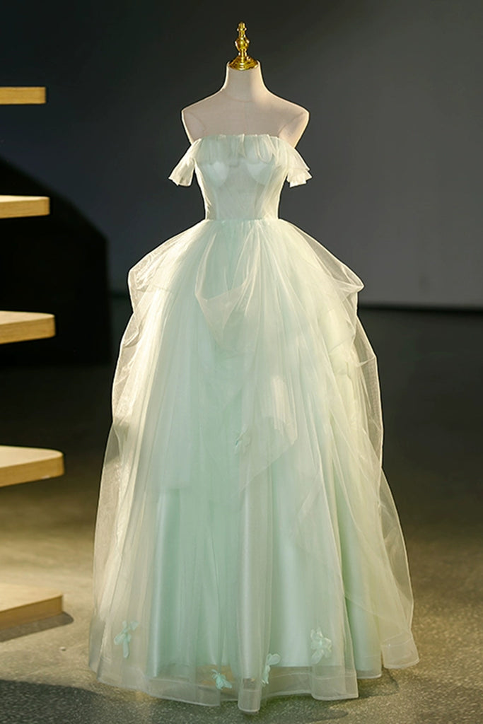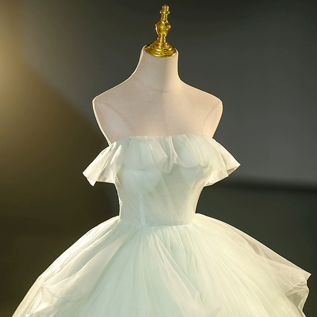 Light Green Strapless Long Prom Dresses, Light Green Tulle Formal Evening Dresses, Ball Gown WT1225