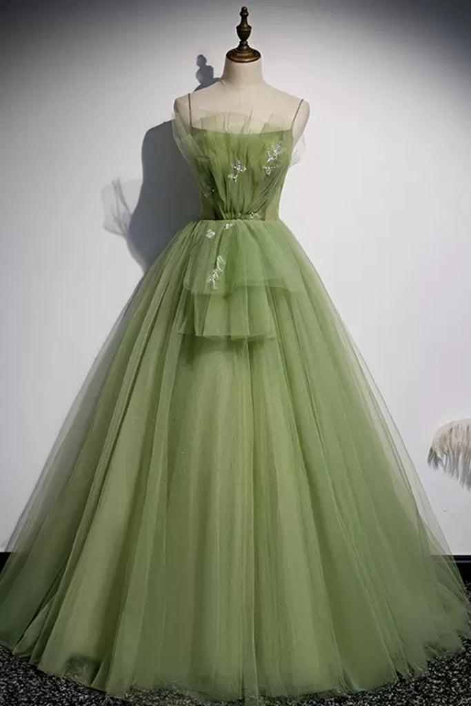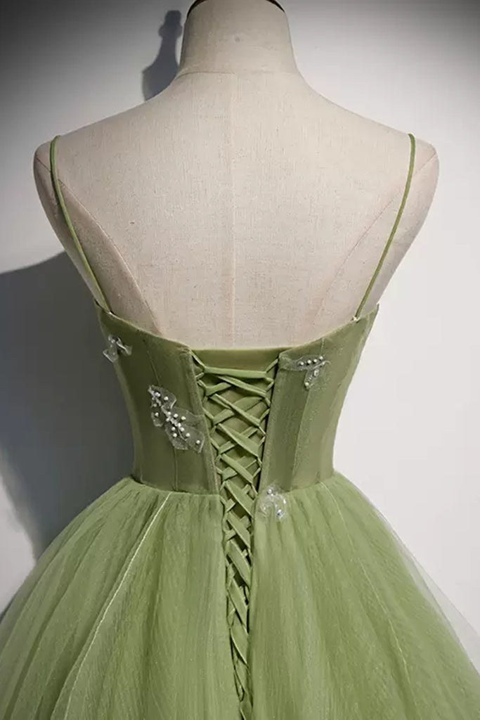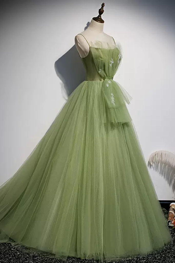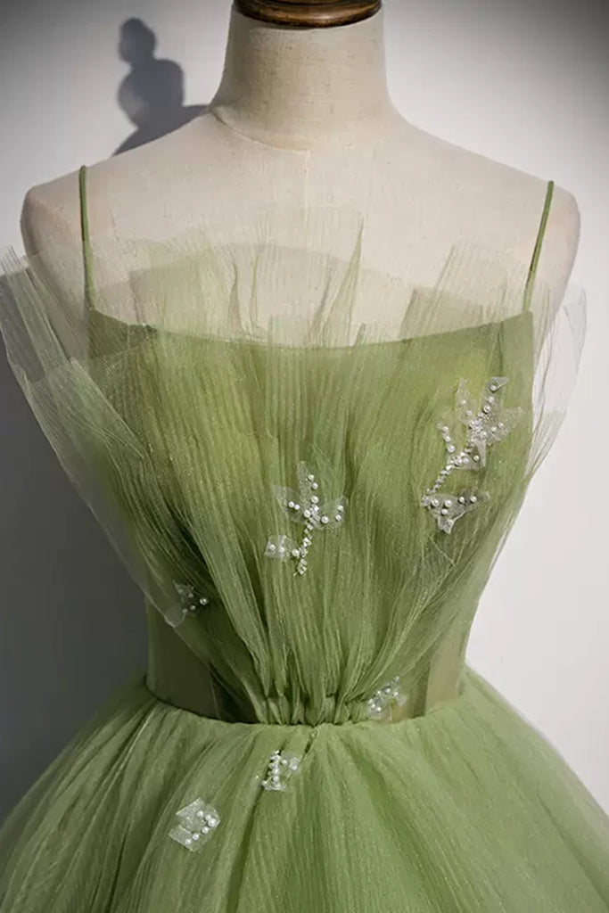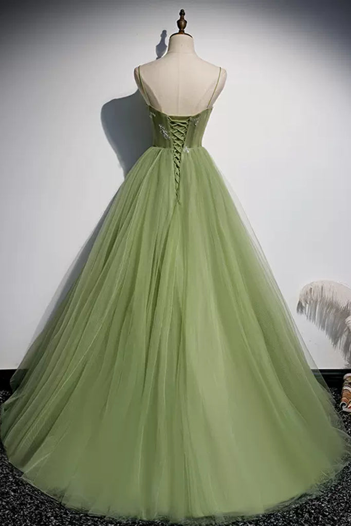 Light Green Tulle Open Back Beaded Long Prom Dresses, Light Green Formal Graduation Evening Dresses WT1240