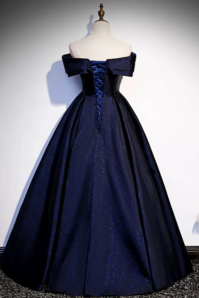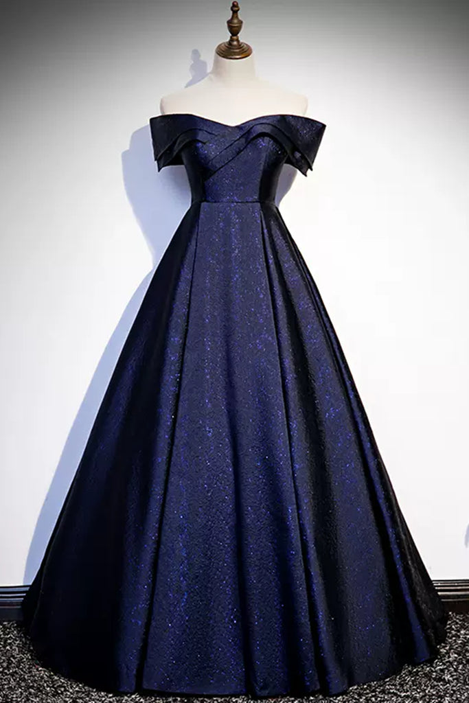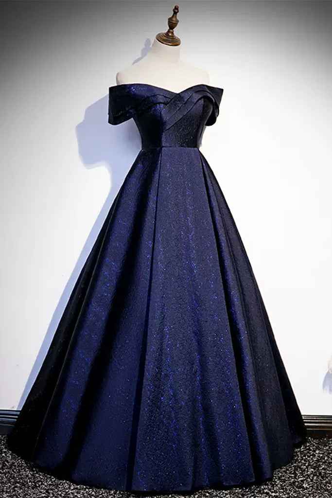 Navy Blue Beauty Off the Shoulder Prom Dresses Long, Off Shoulder Blue Formal Dresses, Blue Evening Dresses WT1223