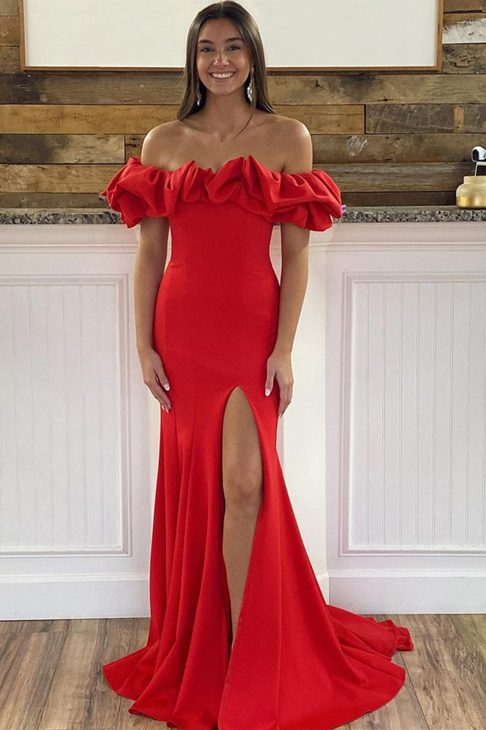 Off the Shoulder Red Prom Dresses, Red Off Shoulder Long Formal Graduation Dresses