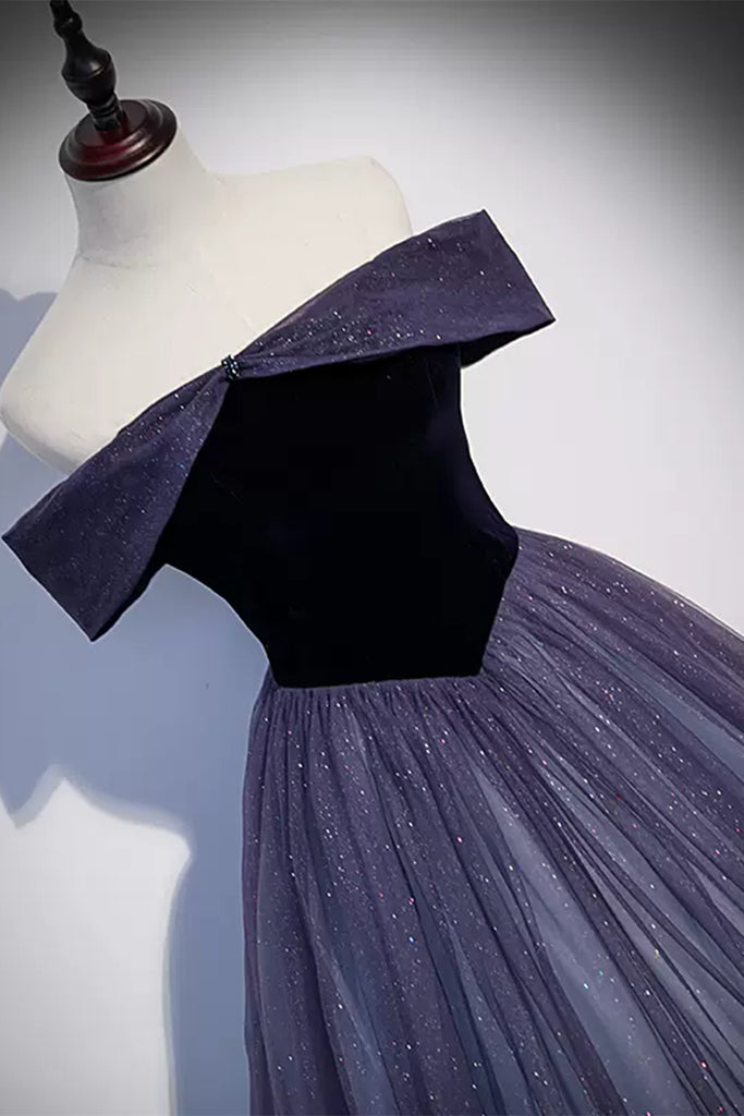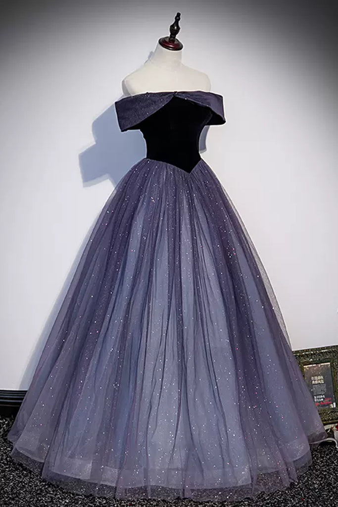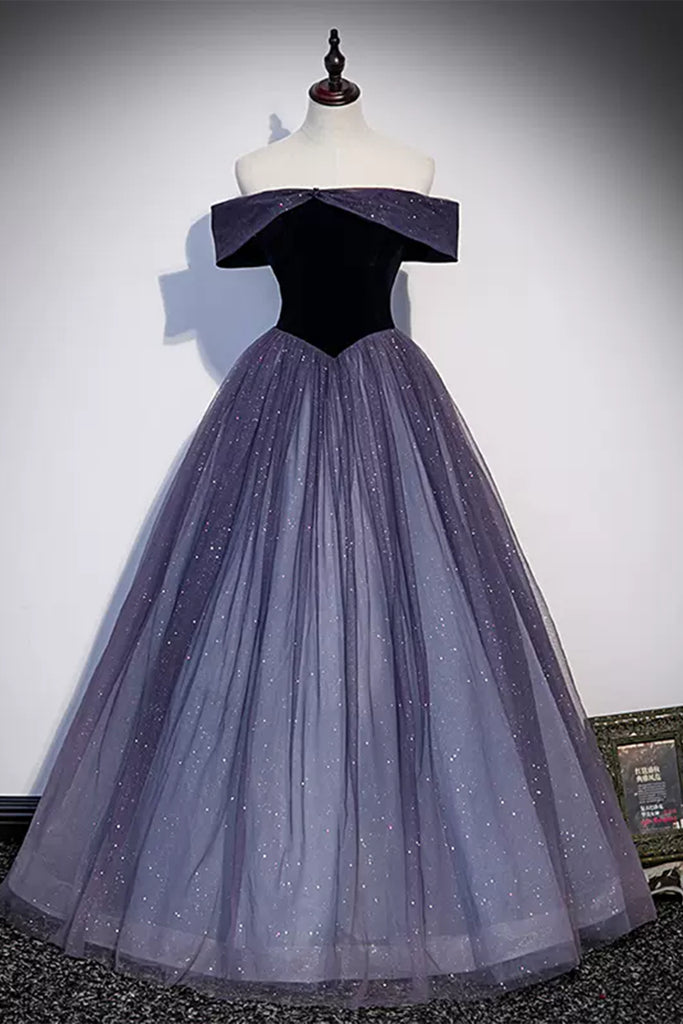 Ombre Shiny Off Shoulder Tulle Long Prom Dresses, Off the Shoulder Formal Dresses, Ombre Evening Dresses WT1183