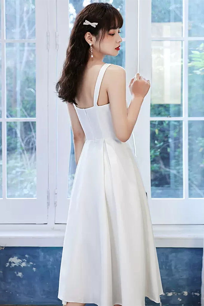 Princess A Line Spaghetti Straps Short White Prom Homecoming Dresses, White Formal Graduation Evening Dresses WT1005