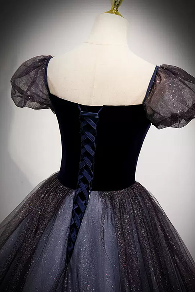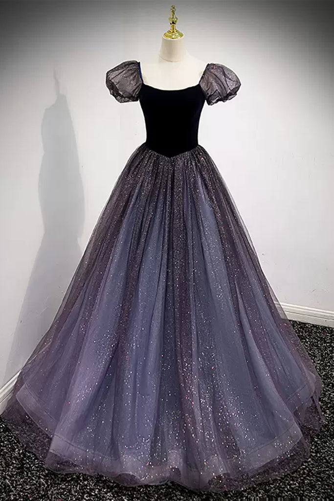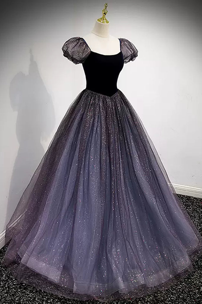Purple/Burgundy Shiny Tulle Short Sleeves A Line Long Prom Dresses, Purple/Wine Red Tulle Formal Graduation Evening Dresses WT1202