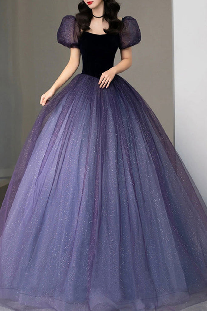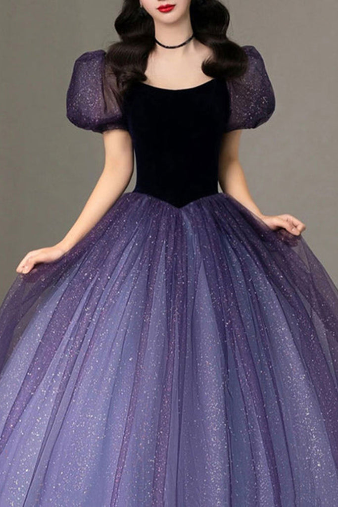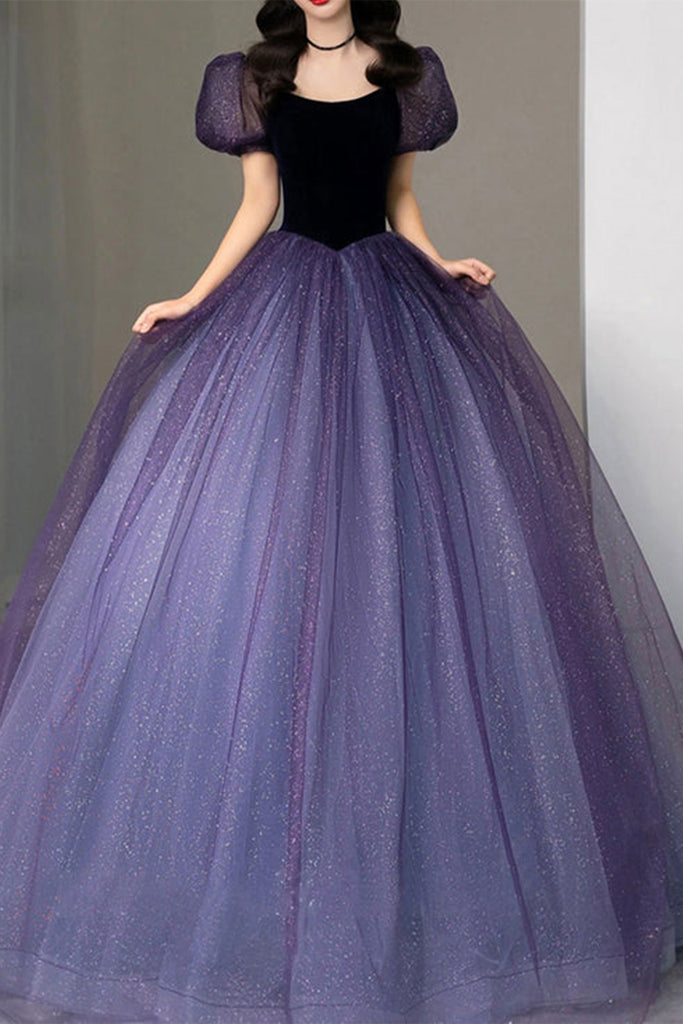 Shiny Purple Tulle Long Prom Dresses, Princess Purple Formal Evening Dresses, Purple Ball Gown WT1058
