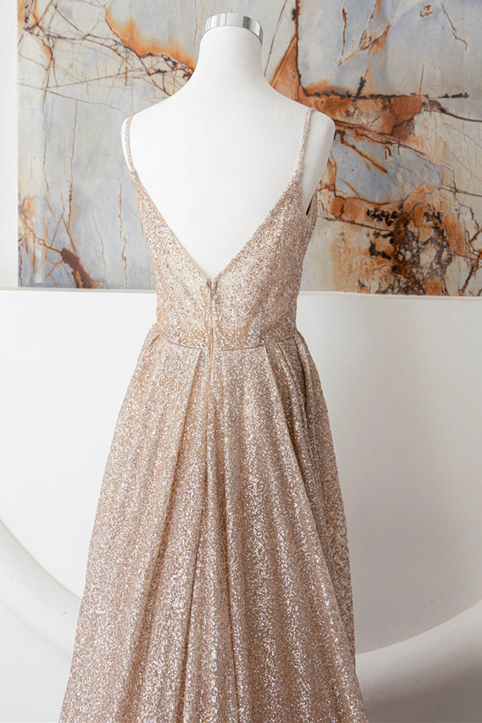 Shiny Tulle A Line V Neck Champagne Long Prom Dresses, Long Champagne Formal Graduation Evening Dresses WT1175