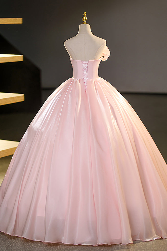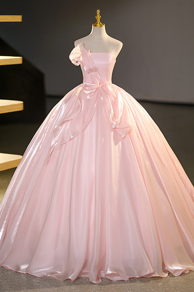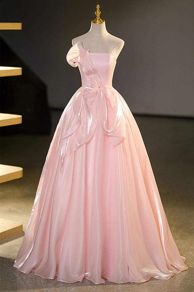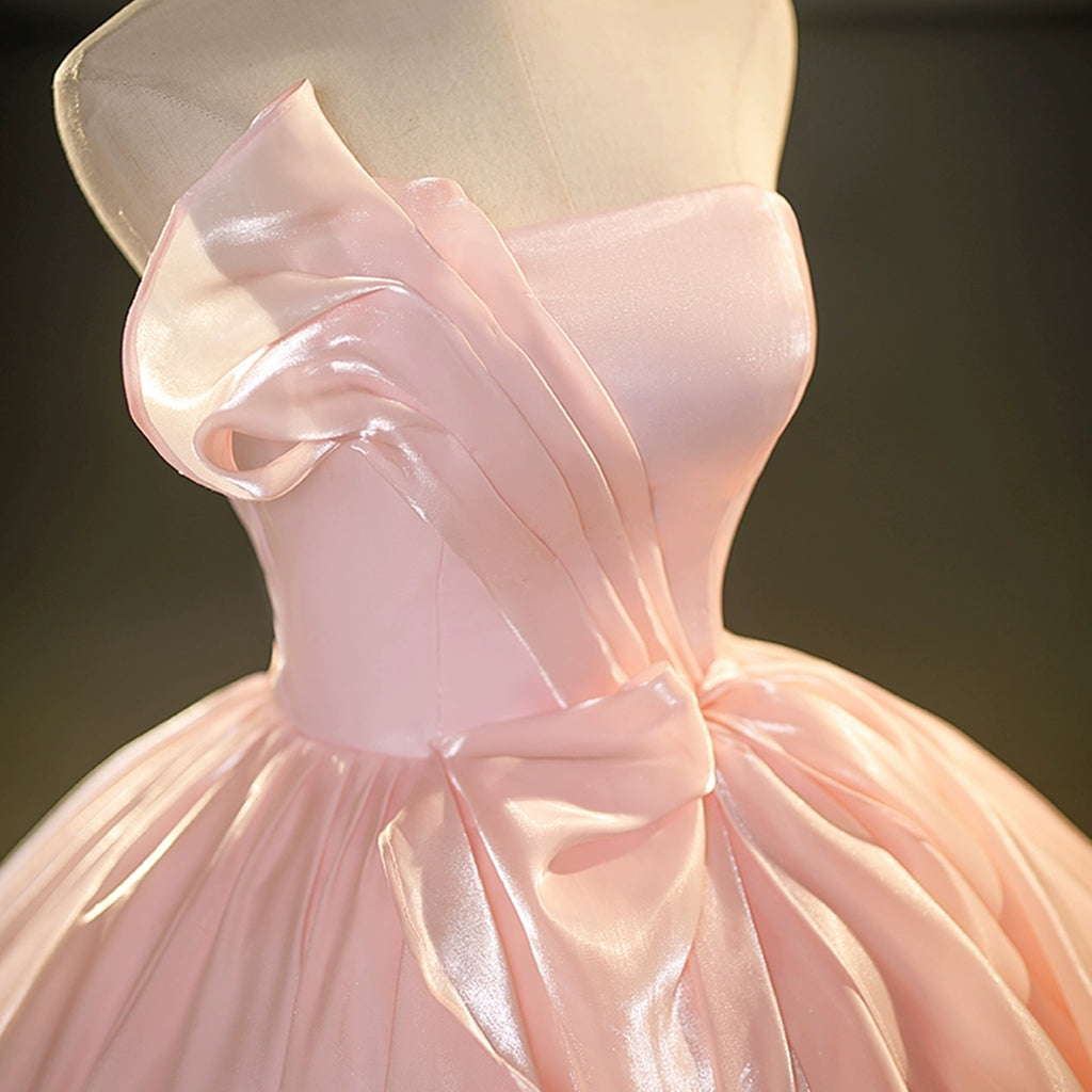 Strapless Pink Satin Long Prom Dresses, Long Pink Formal Evening Dresses, Pink Ball Gown WT1230