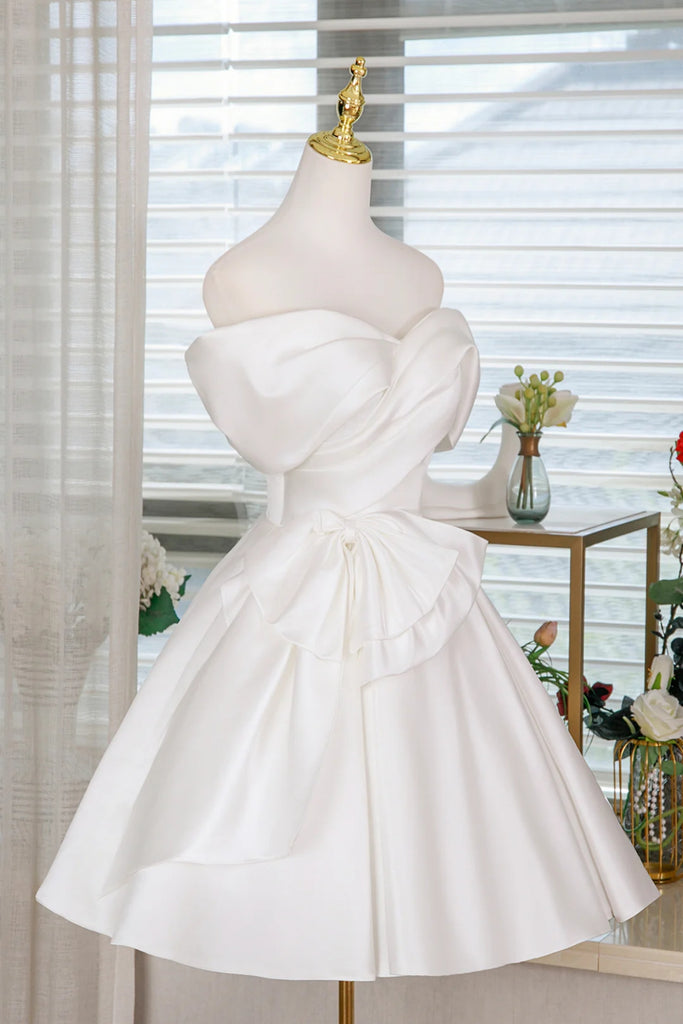 White Satin Off the Shoulder Short Prom Dresses, Off Shoulder White Homecoming Dresses WT1667