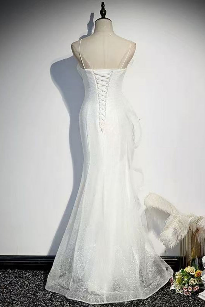 White Shiny Spaghetti Straps Mermaid Long Prom Dresses, Mermaid White Formal Dresses, White Evening Dresses